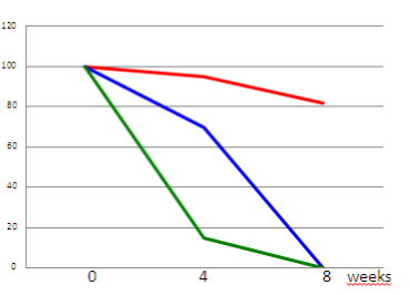 結(jié)論:本實(shí)驗(yàn)在有氧、40℃環(huán)境下進(jìn)行的原料穩(wěn)定性比較,結(jié)果顯示8周后普正使用的原料穩(wěn)定性最強(qiáng),仍然有高達(dá)80%的蝦青素含量。