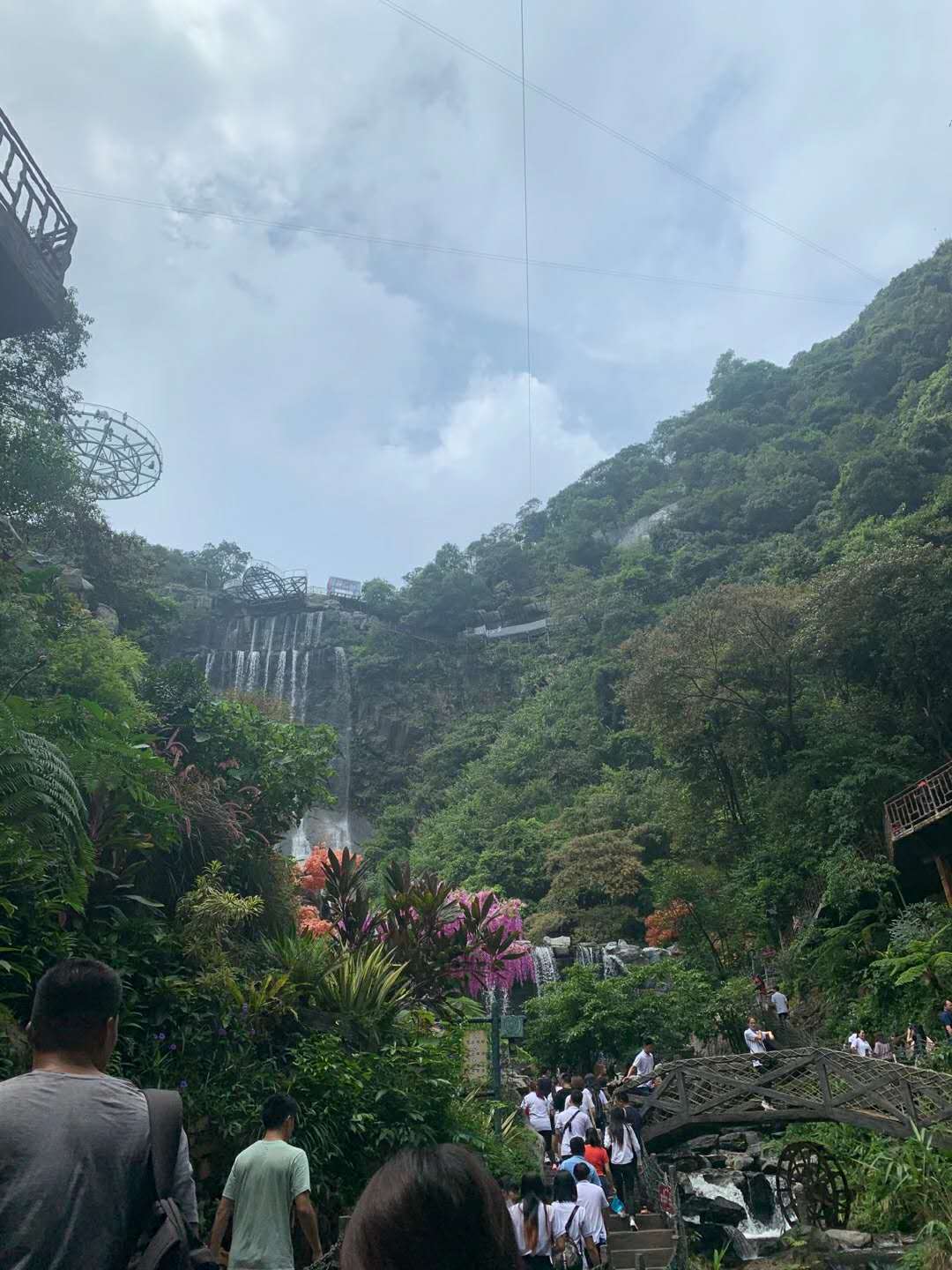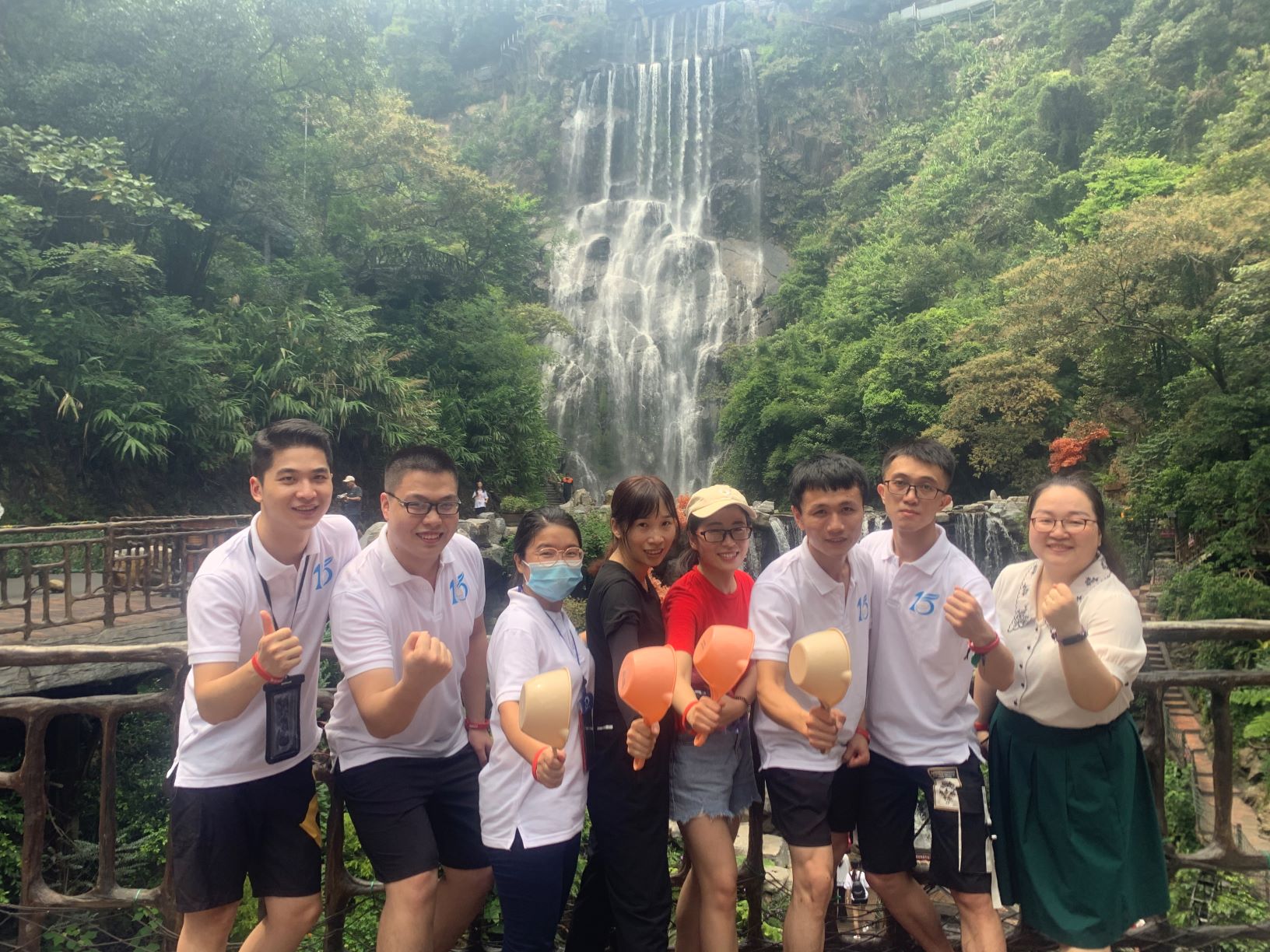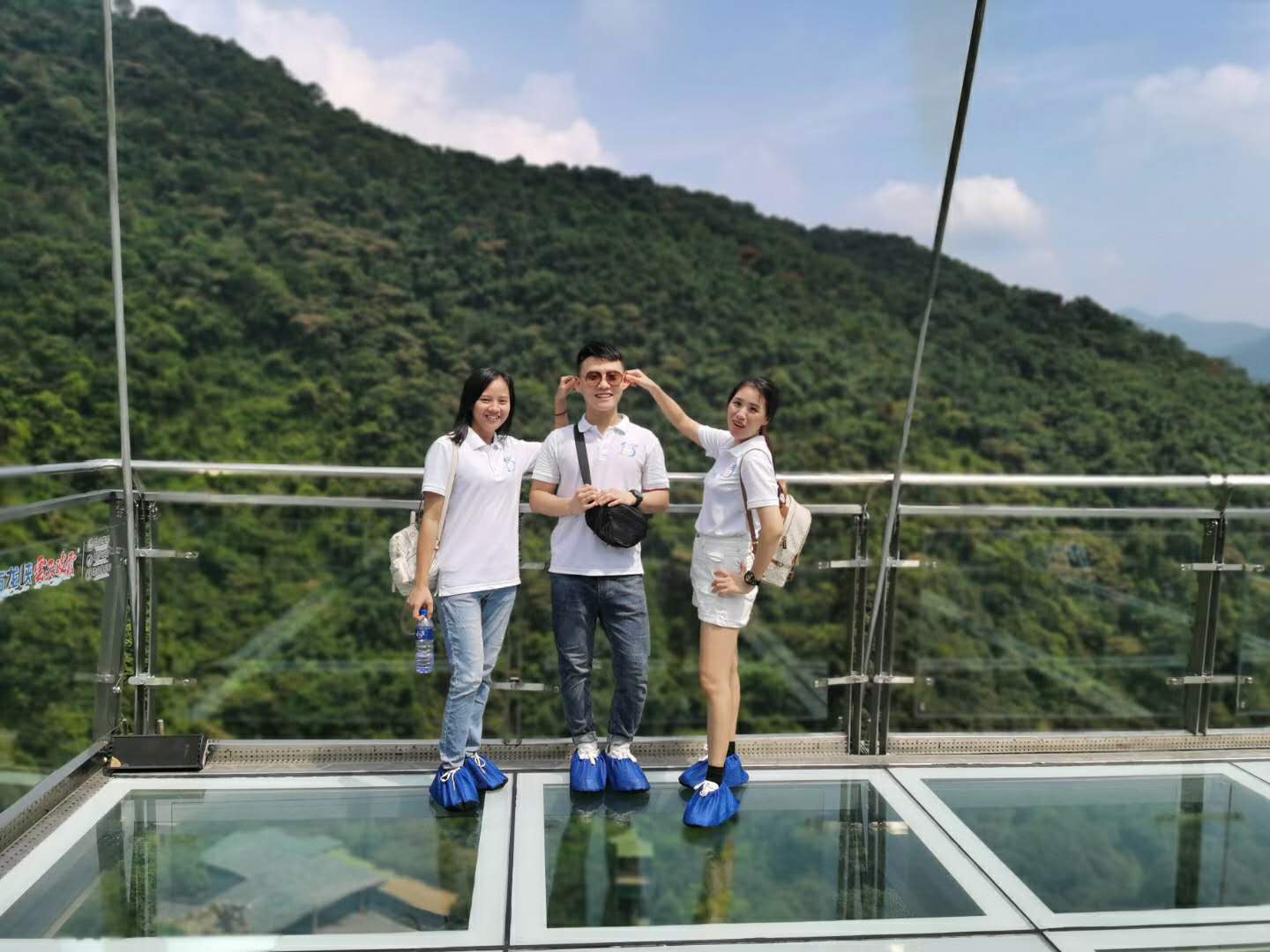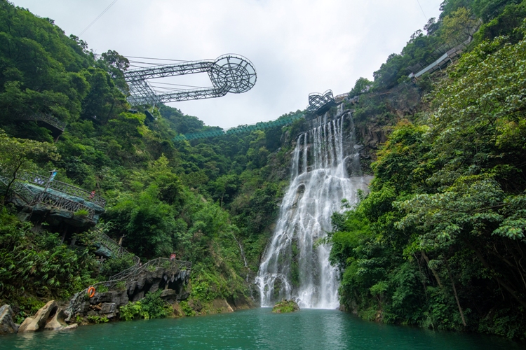 第一站是玻璃大峽谷。小伙伴們一路浩浩蕩蕩,沿著林間小路拾級而上,這里樹木郁郁蔥蔥,層層疊疊的深綠淺綠令人應接不暇,再加上無數(shù)白練飛漱其間,水霧彌漫,清幽醉人。帥哥美女們一路談笑風生,一路擺拍錄影,想把滿山的美景和此時此刻的好心情定格帶回家!