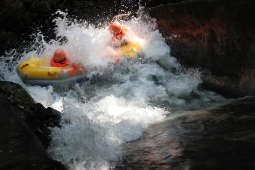 接下來是驚險刺激的漂流了!被譽為“浪尖上的過山車”的古龍峽漂流,有著全國最大的漂流落差、最刺激的漂流體驗。參加了漂流活動的帥哥美女們游玩云天玻霸后,迫不及待地下山,一到漂流地點,就歡呼雀躍地穿上救生衣和頭盔,縱身跳上橡皮艇,隨著清流激湍一路漂游而下,體驗一把過山車般的刺激快感!