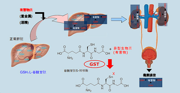 谷胱甘肽含有的半胱氨酸能夠和進(jìn)入人體內(nèi)的藥物和毒素(芥子氣,鉛、汞、砷等重金屬)等結(jié)合成無(wú)毒的化合物,從而具有解毒功能。