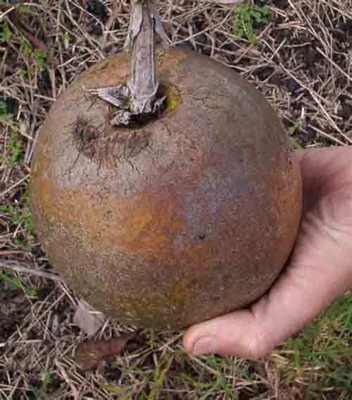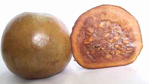 寶樂果粉取自寶樂果,也叫博羅霍,西班牙語為Borojo。它是一種生長(zhǎng)在南美洲厄瓜多爾和哥倫比亞熱帶雨林地區(qū)的水果??礃幼用?,其貌不揚(yáng),和番石榴差不多模樣,不過個(gè)頭稍大。直徑達(dá)7-12cm,還沒有成熟時(shí)呈綠色,成熟時(shí)轉(zhuǎn)為茶褐色,重量有五六個(gè)蘋果那么重,果肉柔軟多籽。味道酸澀粘稠。