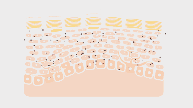 下面是一張人體的皮膚結(jié)構(gòu)圖。在正常情況下,皮膚底部的基底層會(huì)不斷生成角蛋白細(xì)胞,然后不斷移動(dòng)最終脫落。與此同時(shí),同樣位于基底層的黑色素細(xì)胞會(huì)通過絡(luò)氨酸酶不斷制造黑色素,轉(zhuǎn)移進(jìn)角蛋白細(xì)胞,搭起了“便車”。
