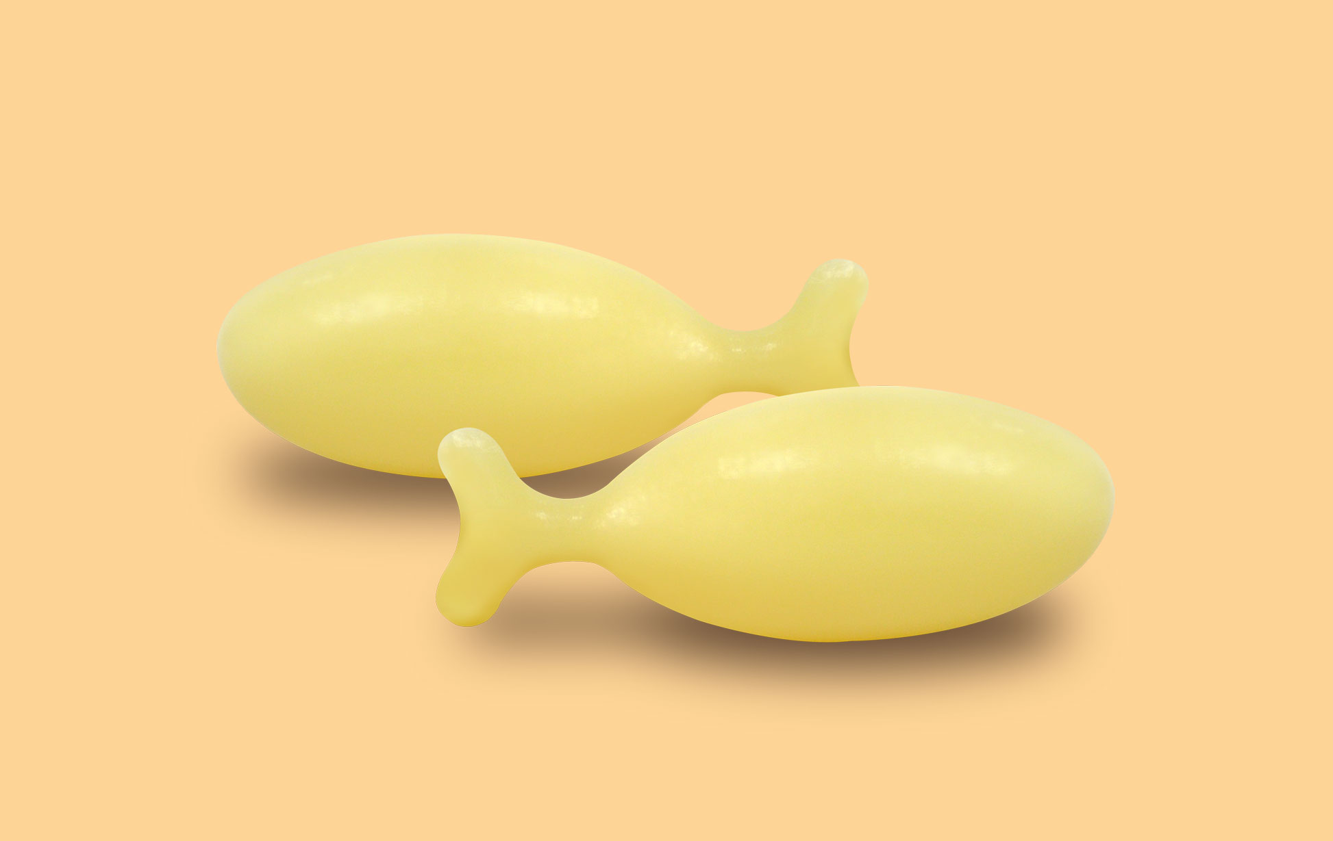 益生元凝膠糖果,外皮淡黃,可愛的小魚形狀,一粒含有8000單位乳糖酶,可以在寶寶飲奶前服用,或加入奶中飲用,為寶寶攝取乳糖保駕護航!